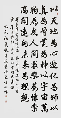 自幼学习书法,几十年奠定了一定的书法功底,特别在西南大学书法研究生学习期间师从西南大学书法博士生导师曹建先生,进一步深化了书法理论和书法技艺。遍临历代名家碑帖,广采各家之长,熔铸汉隶和晋唐楷书的特点,形成了自己的书写风格。同时,从事书法教学多年,在教学相长中与学子共进步。