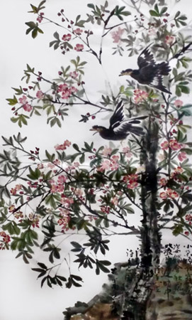 大为老师点评:肖志敏女士所作之画无不尽态极妍,生面别开,气旺神通,笔墨华滋,浑然天成,墨气淋漓,潇洒清新,厚实灵动,相映成趣,画面的结构繁复而有序,笔法奔入而有节,色墨粲然,玲珑剔透创造了充满激情和浪漫感性,但又是全然中国风格品味的现代花鸟画艺术。