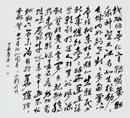 欧阳中石评价申小平书法:书法能够在笔墨上构筑艺术,能够抒发书者的性情。不同的书家有不同的阅历、不同的文化内涵,因而其作品也会有不同的特点和风格。申小平先生的书法,具有深厚的书法理论基础,充满了激情,有着精神层面的兼容与互通,用笔古朴、稳健,富于创新,字结体非常严谨,又有颇为灵动的笔法,体现一种正大气象和阳刚之气,是极为丰富的。这和我们平常所说的书卷气是不完全相同的,他的书艺较多的是以淋漓自然的笔墨为表现,在创作时敢于打破传统思维的定势,追求一种新的和谐之美。我认为他还是在不断实践着,他的这种实践的本身,就对传统汉字的发展起到了带动作用,我们这个时代需要这种书法气象。