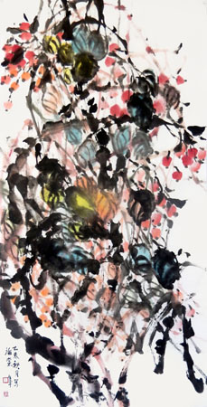道金平作品《花近东溪居士家》68cm×138cm 2014年