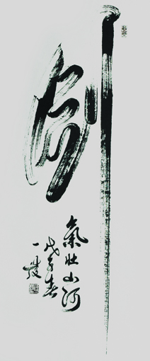 徐一发大师的中华第一【剑】字,笔锋苍浑、沉雄峻肆,如壮士拔剑、遒劲豪迈,形神威严、所向无敌。当代草圣林散之有时赞曰:书光剑气两道通,古人于此夺三峰,能将书剑双融合,化作刚柔一气雄。