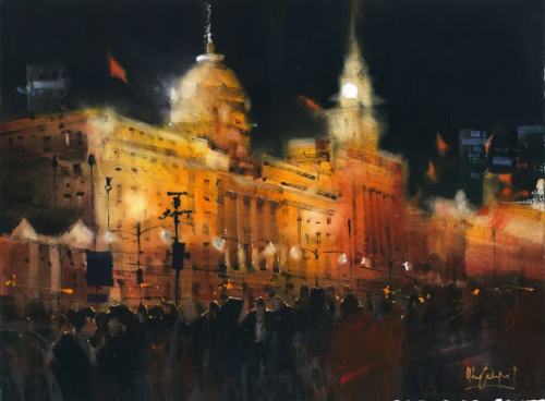 乌拉圭 阿尔瓦罗·卡斯塔涅特 《夜色中的上海》 56×76cm