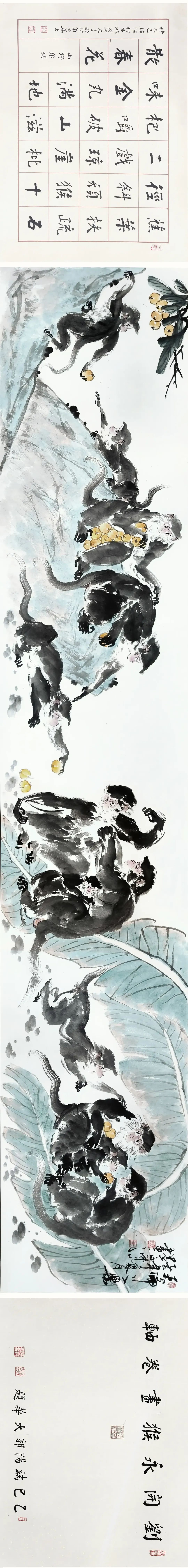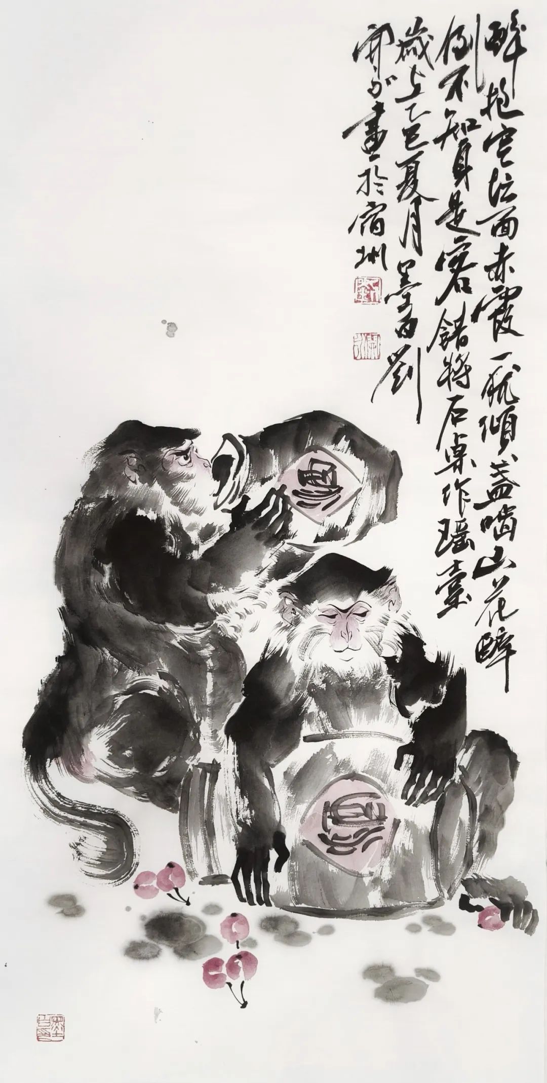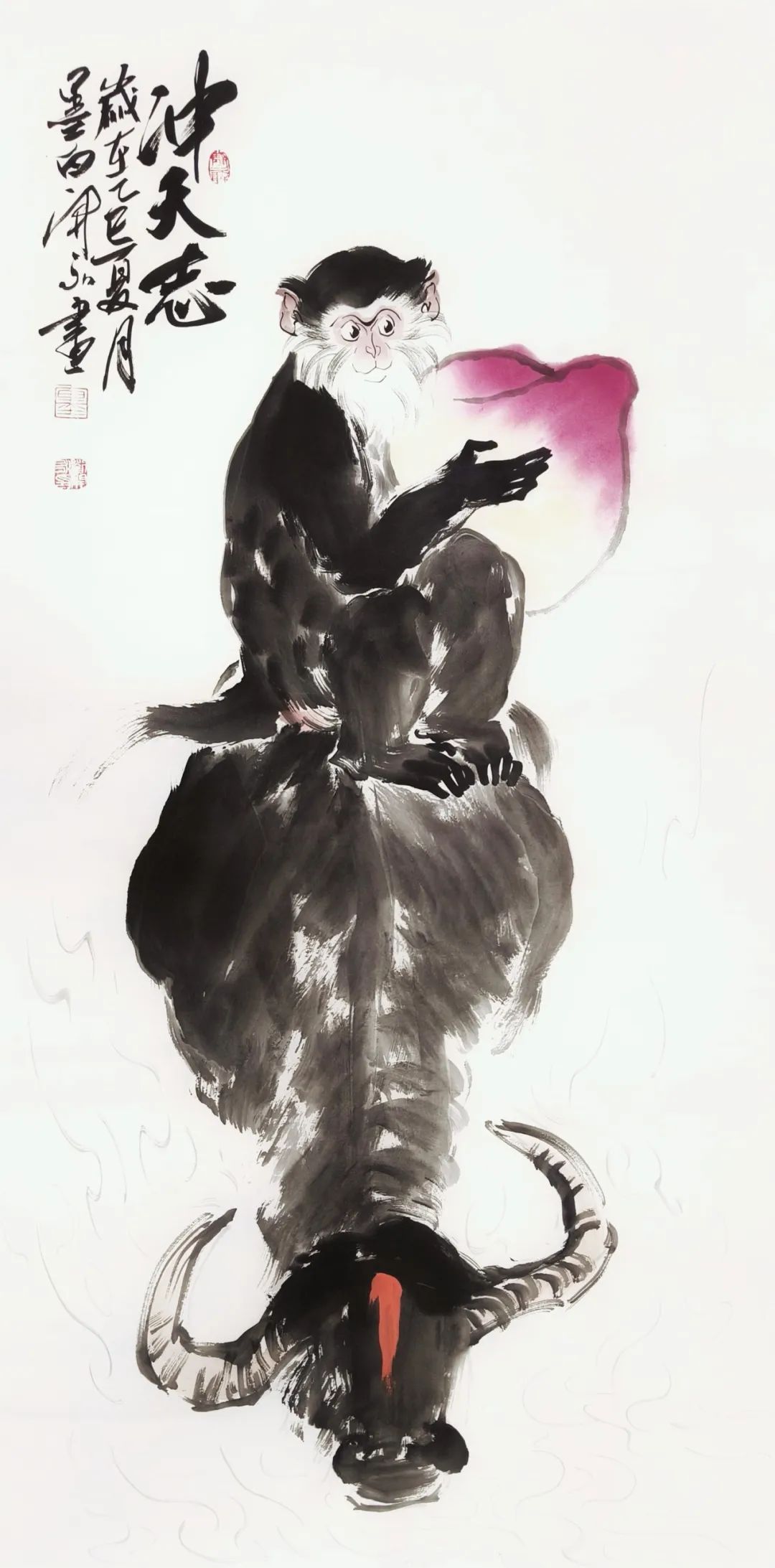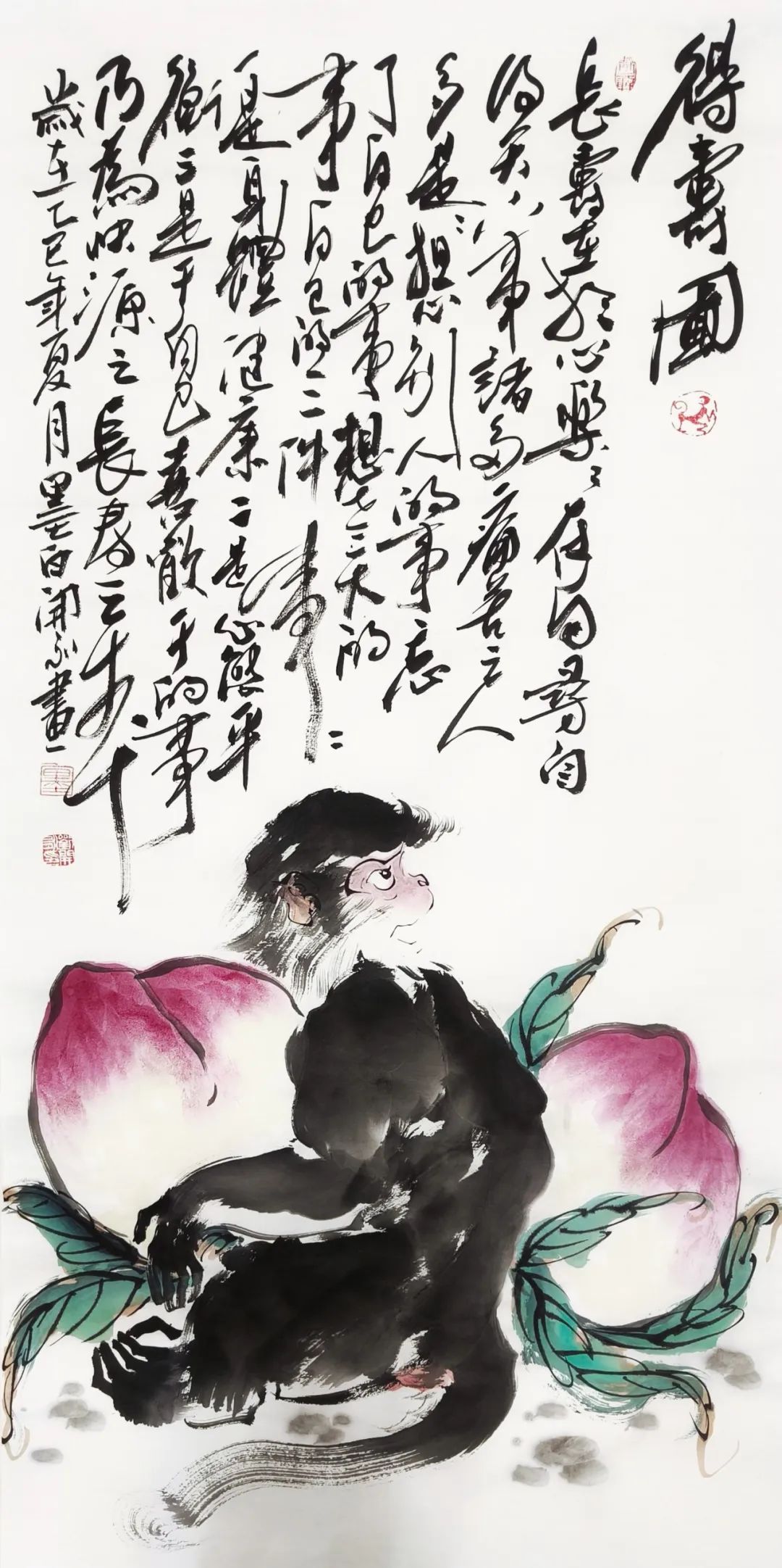 猴画艺术需要继承中国传统画风,同时吸收当代绘画的新观念。通过笔画、结构、用色、章法的多变,突出刚柔、虚实、浓淡等韵律变化,使作品兼具传统底蕴与时代审美。例如,我的创作注重将猴子从“自然表象”升华为“意象”,融入人情味与精神追求。