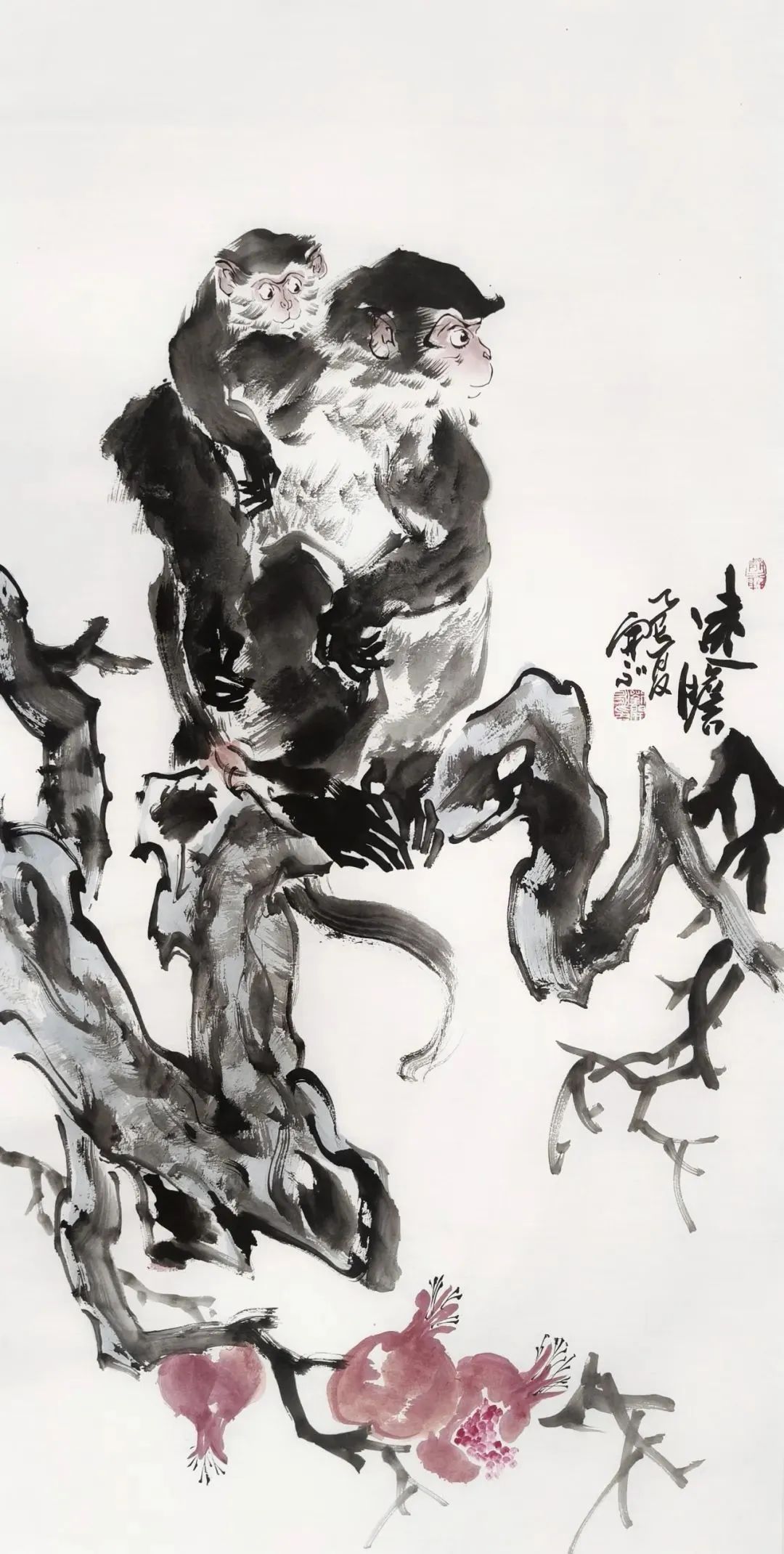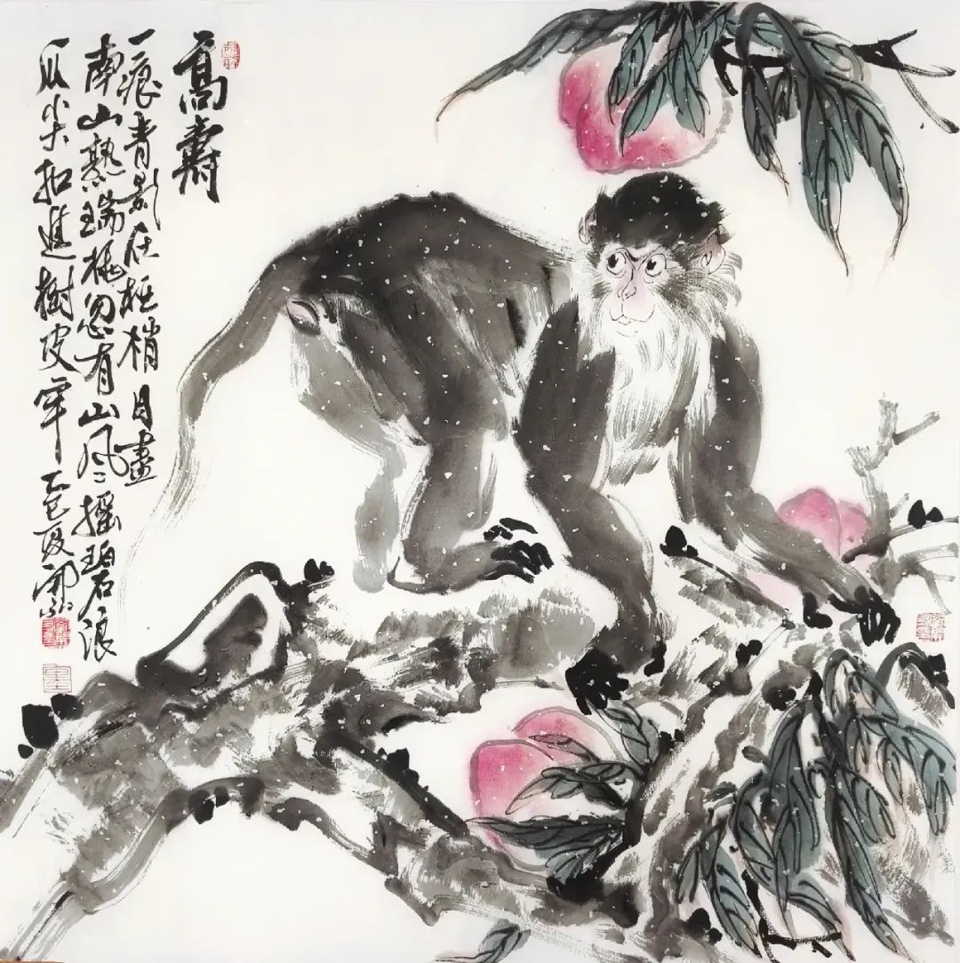 借鉴宋代花鸟画的"理趣"与明清写意画的"笔墨情趣",使猴画兼具形似与神韵。